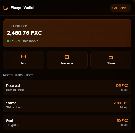 Securely manage your FXC tokens with our built-in wallet—designed to make sending, receiving, and staking effortless. The wallet offers robust security features, including advanced encryption and multi-factor authentication, ensuring your assets remain protected from potential threats. With its intuitive interface, even first-time citizens can easily navigate and manage their tokens without any hassle. Whether you’re staking for rewards or transferring tokens to friends, our wallet is built to keep your assets safe and accessible anytime, anywhere. Experience the perfect blend of simplicity and security for all your FXC token needs.